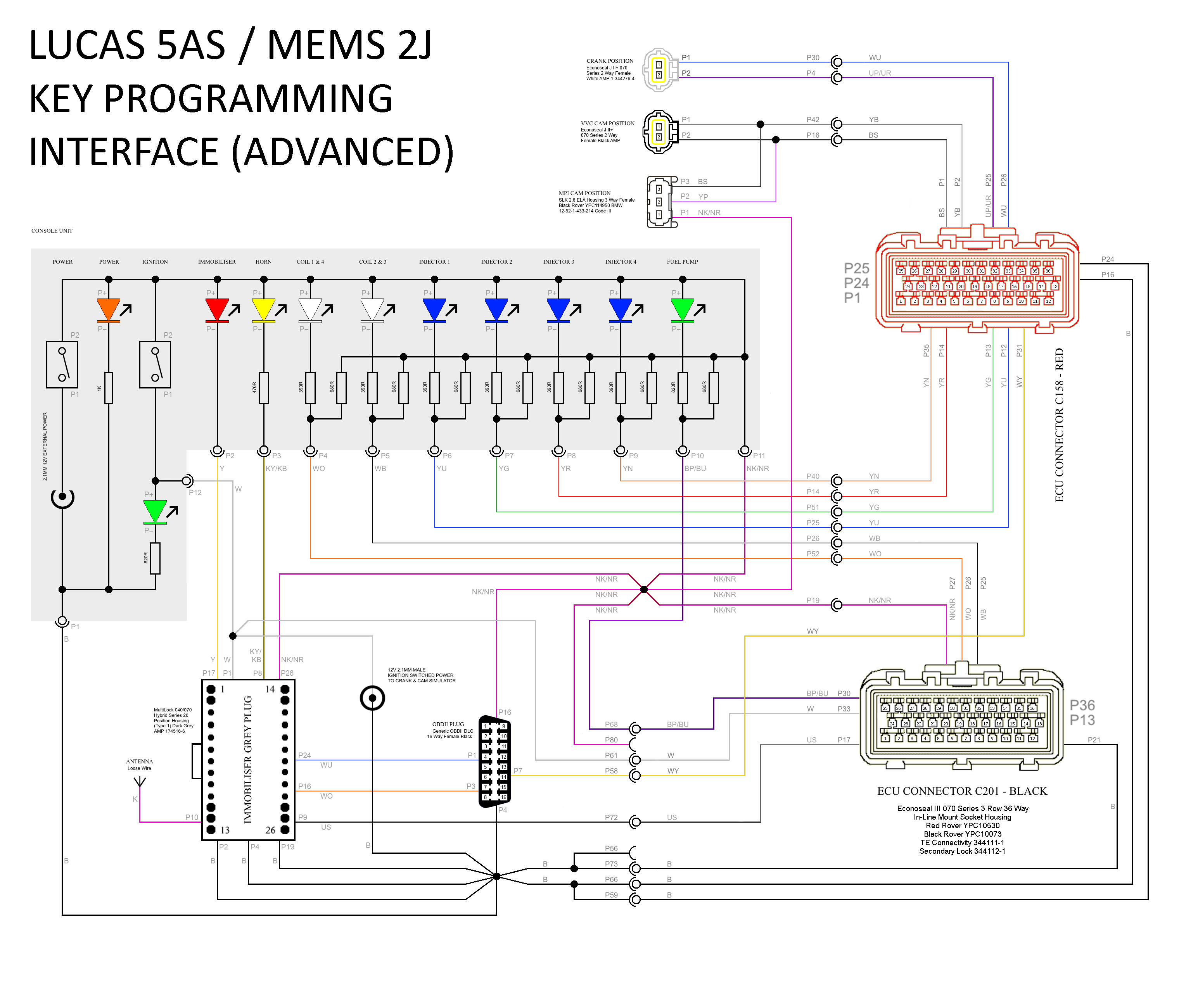 … I built an interface which allowed me to run an ECU, Immobiliser & Key Programmer (or OBDII scanner) (using a standard OBDII diagnostic socket) and optionally my Crank & Cam Simulator together on the bench.