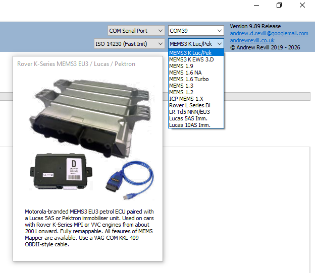 MEMS Mapper and data logging a MEMS3 ECU.
